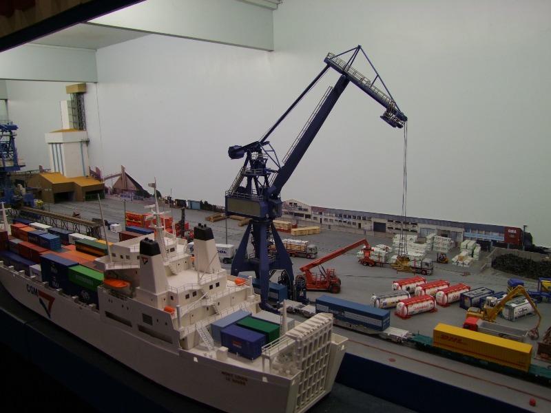 4 ème réseau : Le port Kergroise de Lorient reproduit en HO par l'amicale laïque de Caudan. Très impressionnant avec ses grues portuaires Caillard, son porte conteneur CGM et la reproduction fidèle d'un embranchement ferroviaire au milieu des réservoirs à pétroles, quais portuaires, parc à ferrailles et bois....