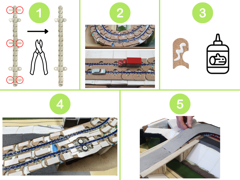 2️⃣ Build your circuit with the tracks and position the cover supports