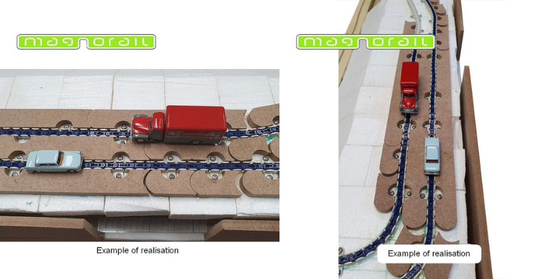 The objective is clear: to offer a simple, quick, and clean solution to integrate Magnorail into all layouts. These new references allow for custom covering, save time during installation, and ensure smooth and realistic vehicle movement, regardless of your circuit configuration.